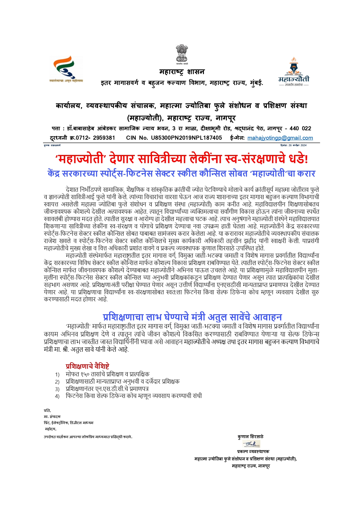 महाज्योती देणार सावित्रीच्या लेकींना स्व-संरक्षणाचे धडे !