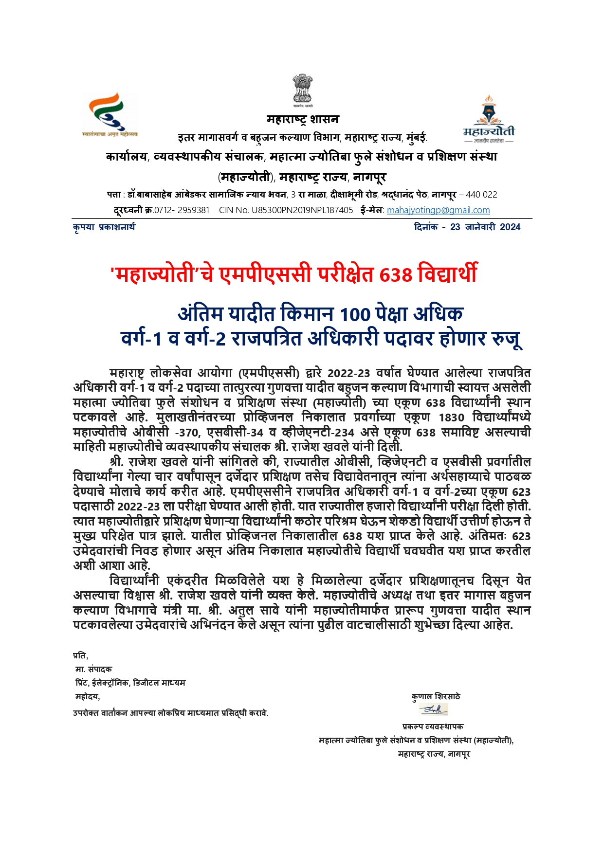 महाज्योतीचे एमपीएससी परीक्षेत 638 विद्यार्थी