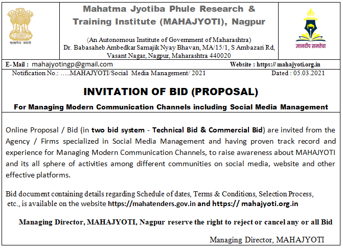 माहिती अधिकार कायदा अंतर्गत महाज्योतीची माहिती