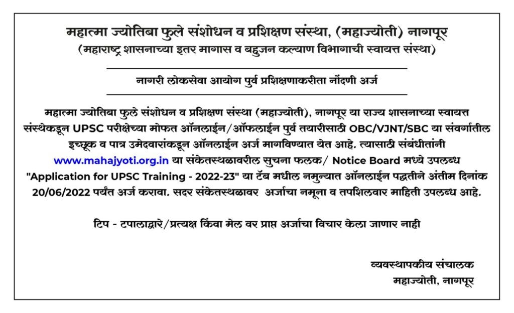(An Autonomous Institute of The Other Backward Class Bahujan Welfare Department, Govt. of Maharashtra)