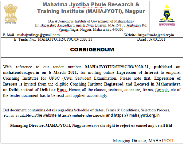 (An Autonomous Institute of The Other Backward Class Bahujan Welfare Department, Govt. of Maharashtra)