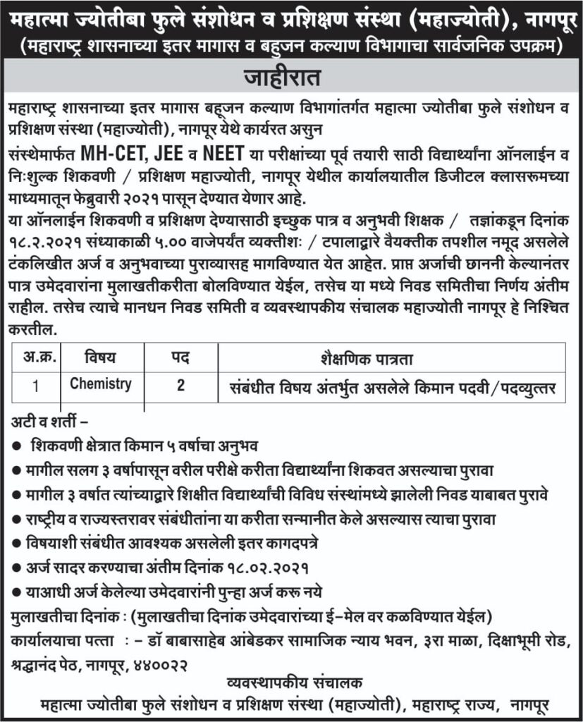 (An Autonomous Institute of The Other Backward Class Bahujan Welfare Department, Govt. of Maharashtra)
