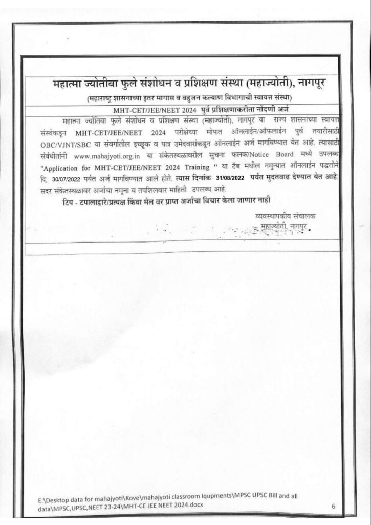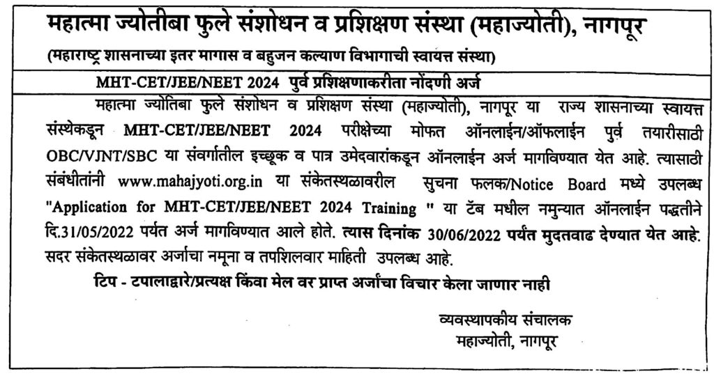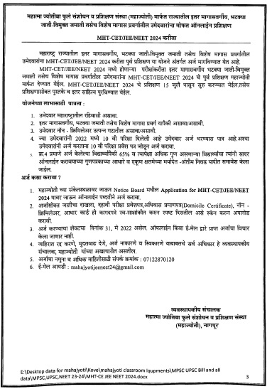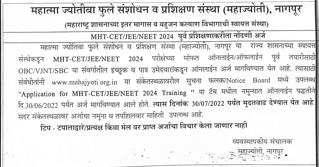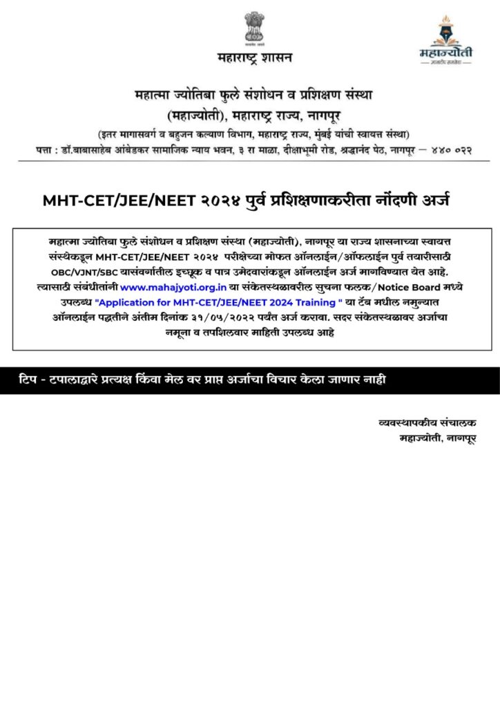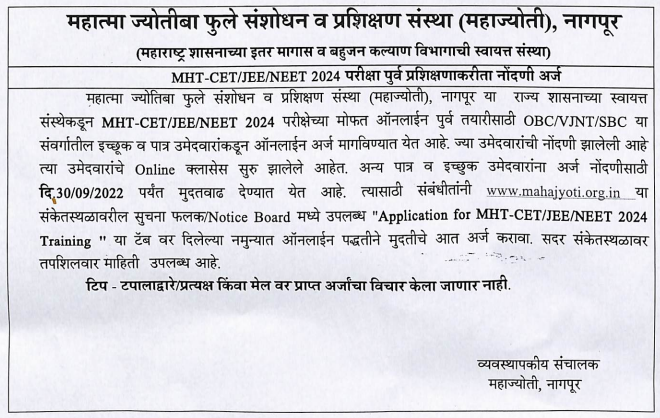 Application For MHT-CET/NEET/JEE 2024 Training