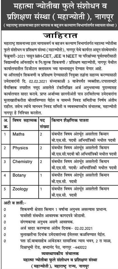 (An Autonomous Institute of The Other Backward Class Bahujan Welfare Department, Govt. of Maharashtra)