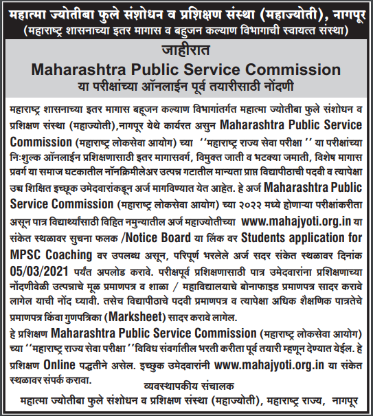 Students Application for MPSC Coaching