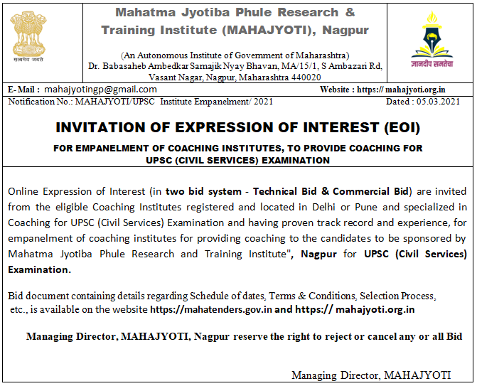 Invitation of Expression of Interest (UPSC Coaching)