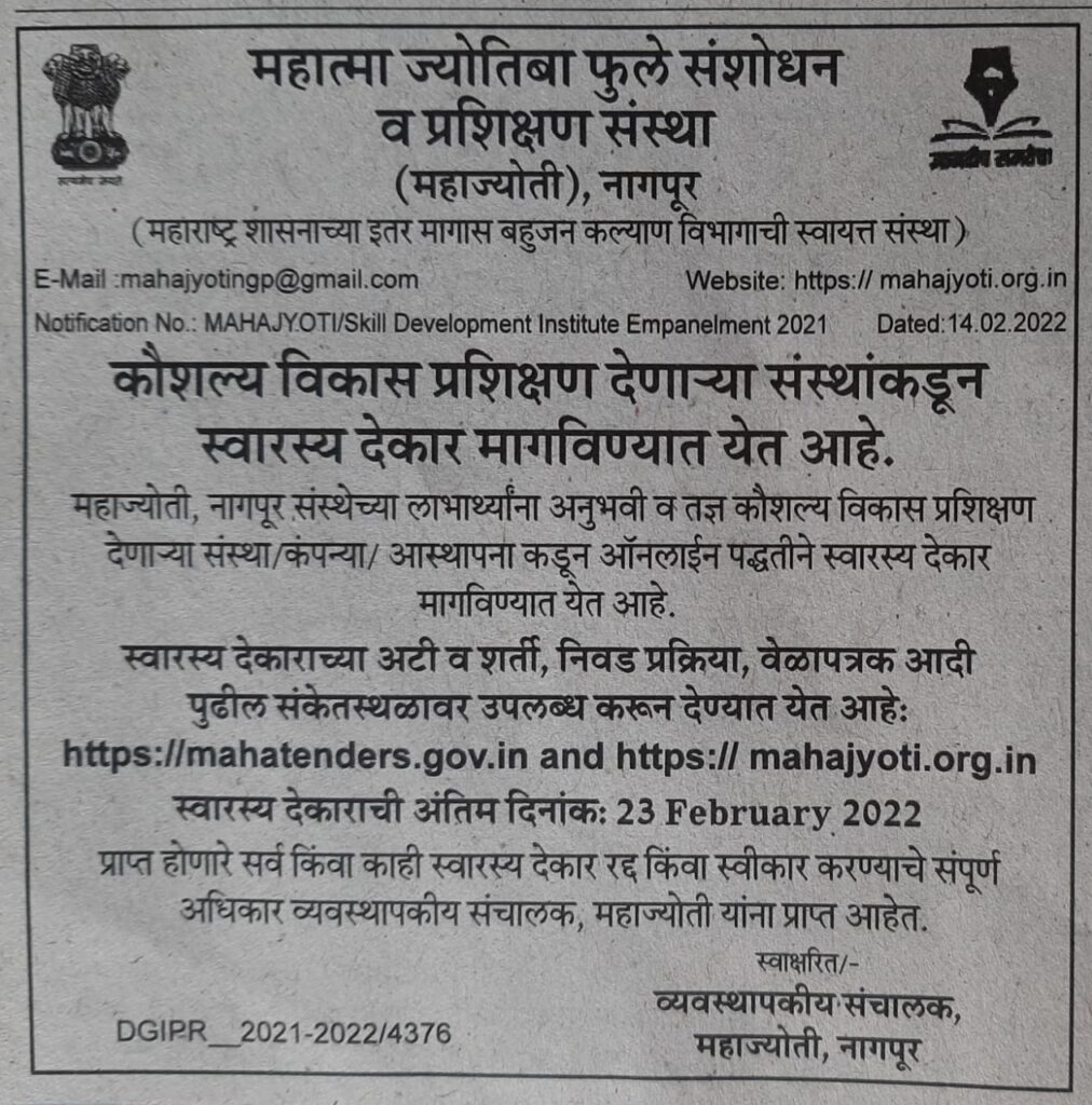 (महाराष्ट्र शासनाच्या इतर मागास बहुजन कल्याण विभागाची स्वायत्त संस्था )